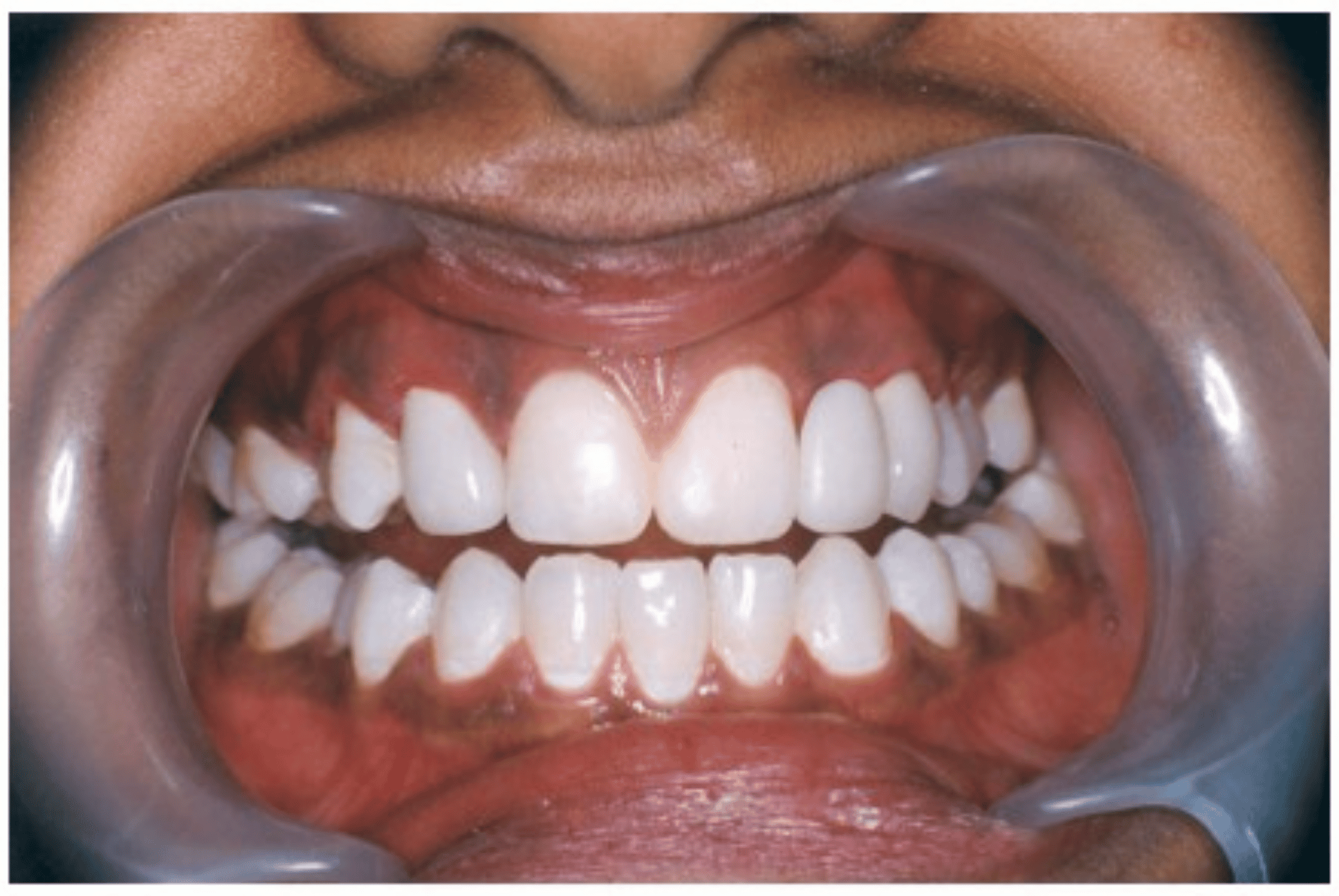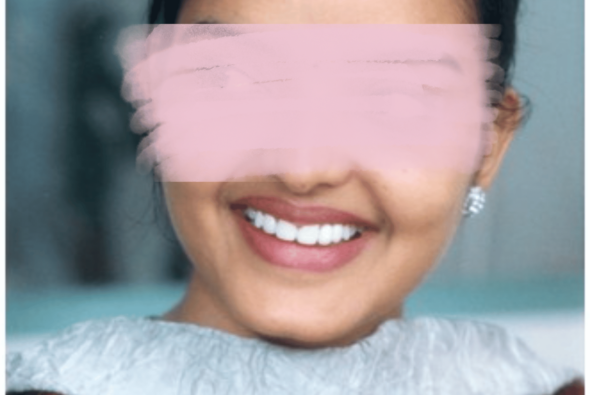 Smile makeover at Dr. Cherian’s dental clinic, showcasing the dramatic results of gum recontouring and porcelain veneers for a new, beautiful smile.